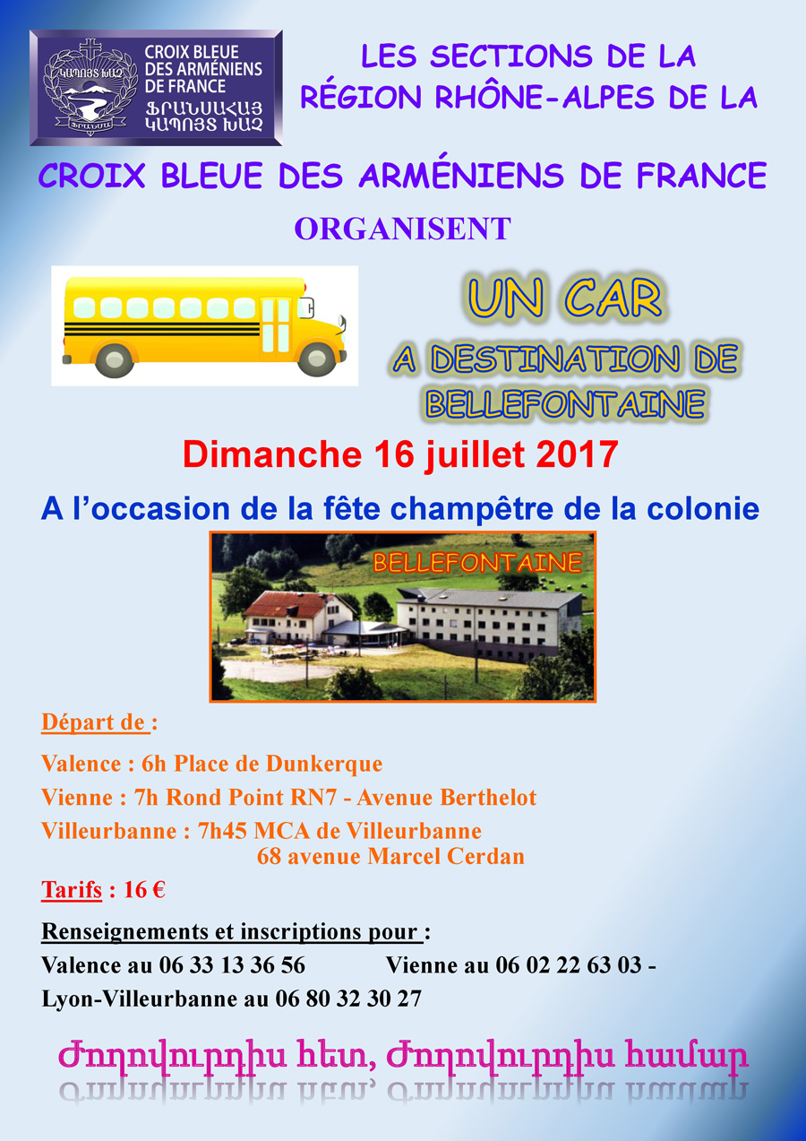 Les sections de la Région Rhône-Alpes organisent un car à destination de Bellefontaine, à l’occasion de la fête champêtre de la colonie.