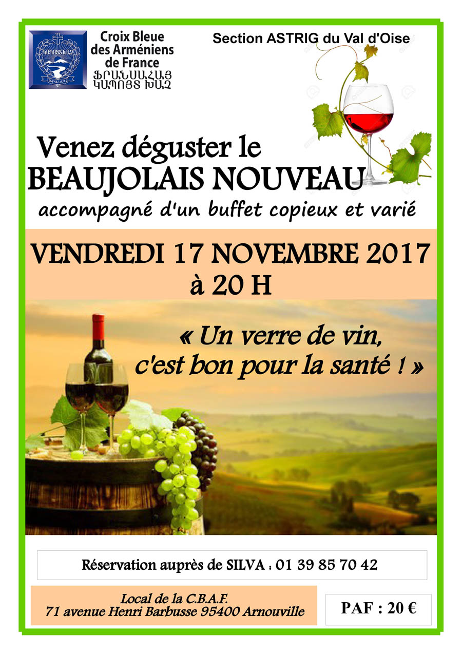 Des verres pour la dégustation et un buffet bien garni, voilà ce que la section vous propose pour l’arrivée du « BEAUJOLAIS NOUVEAU »