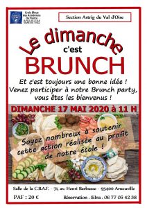 Voir les détails »Le brunch du week-end... La Croix Bleue des Arméniens de France, section Astrig du Val d'Oise, organise un BRUNCH, au profit de son école. Rejoignez-nous le Dimanche 17 mai 2020, à partir de 11 heures, au 71 avenue Henri Barbusse à Arnouville (95400). Participation aux frais : 20 € par personne. Réservation : Silva : 06 77 05 42 38