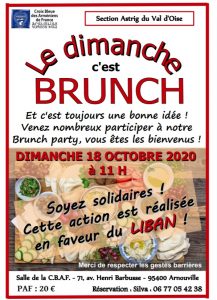 Voir les détails »Le brunch du week-end... c'est toujours une bonne idée ! La Croix Bleue des Arméniens de France, section Astrig du Val d'Oise, organise un BRUNCH, au profit du LIBAN. Soyez solidaires et venez nombreux participer à notre Brunch party, vous êtes les bienvenus ! Rejoignez-nous le Dimanche 18 octobre 2020, à partir de 11 heures, au 71 avenue Henri Barbusse à Arnouville (95400). Participation aux frais : 20 € par personne. Réservation : Silva : 06 77 05 42 38