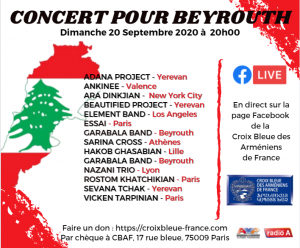 Voir les détails »Nous vous attendons sur notre page Facebook le dimanche 20 septembre à 20h pour notre Concert de soutien Des artistes internationaux chantent pour Beyrouth Soyez au rendez-vous