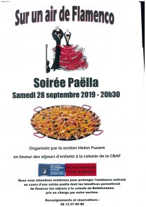 Voir les détails »Nous vous attendons nombreux pour prolonger l'ambiance estivale au cours d'une soirée paella dont les bénéfices permettront de financer les séjours à la colonie de Bellefontaine pris en charge par notre section.