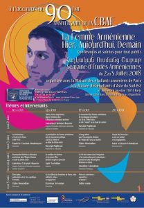 Voir les détails »C'est parti pour la 9ème Semaine d'Etudes Arméniennes de la Croix Bleue des Arméniens de France . La Femme arménienne : Hier, Aujourd'hui, Demain Cette année, elle sera ouverte à tous. Le programme complet des conférences et animations sera publié prochainement. Les inscriptions sont ouvertes. Attention : si vous souhaitez un hébergement à la Cité Universitaire, inscription obligatoire avant le 1er mai 2018 (conditions spéciales pour les jeunes de 18 à 30 ans) Renseignements : 01 53 34 18…