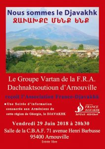 Voir les détails »Le Groupe Vartan de la F.R.A. Dachnaksoutioun d'Arnouville reçoit l'Association France Djavakhk Une soirée d'information consacrée aux Arméniens de cette région de Géorgie, le DJAVAKHK.
