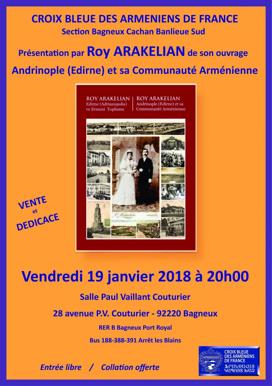 La section vous invite à une vente-dédicace par Roy Arakélian de son livre « Andrinople (Edirne) et sa communauté arménienne ».