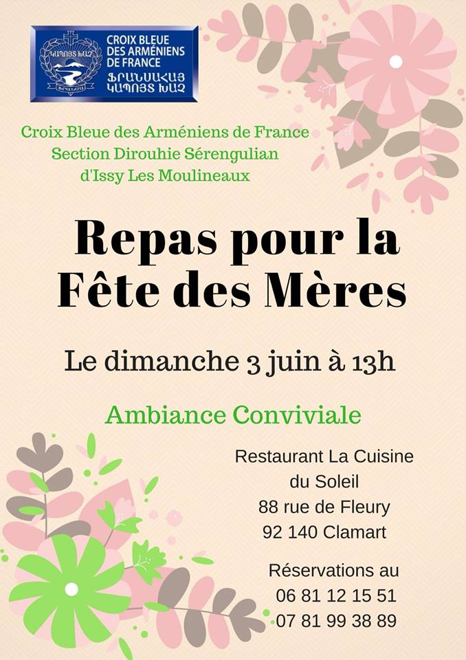 Repas pour la Fête des Mères le Dimanche 3 juin 2018 à 13h