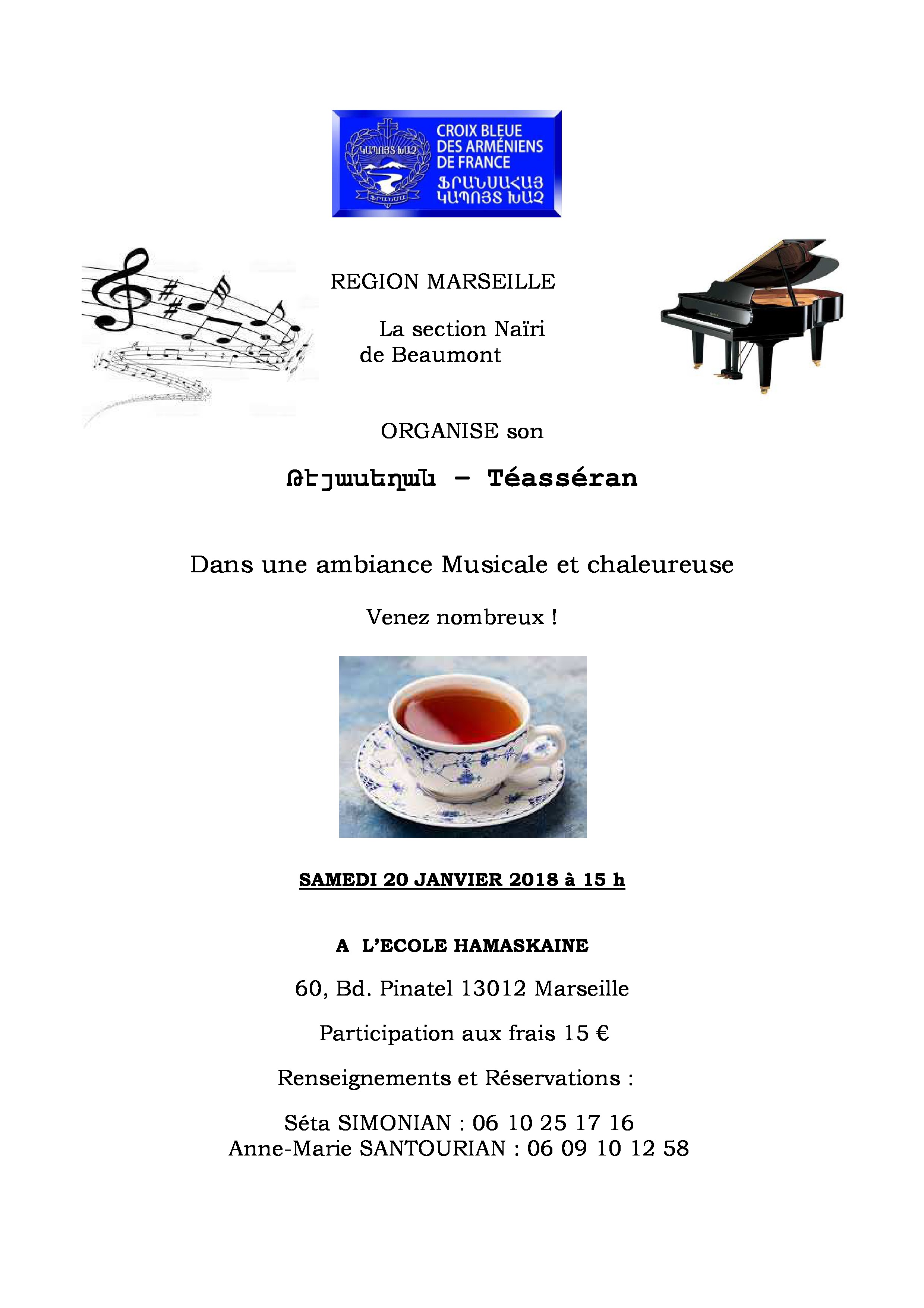 La section vous invite à un « téasséran » dans une ambiance musicale et chaleureuse. Venez nombreux !