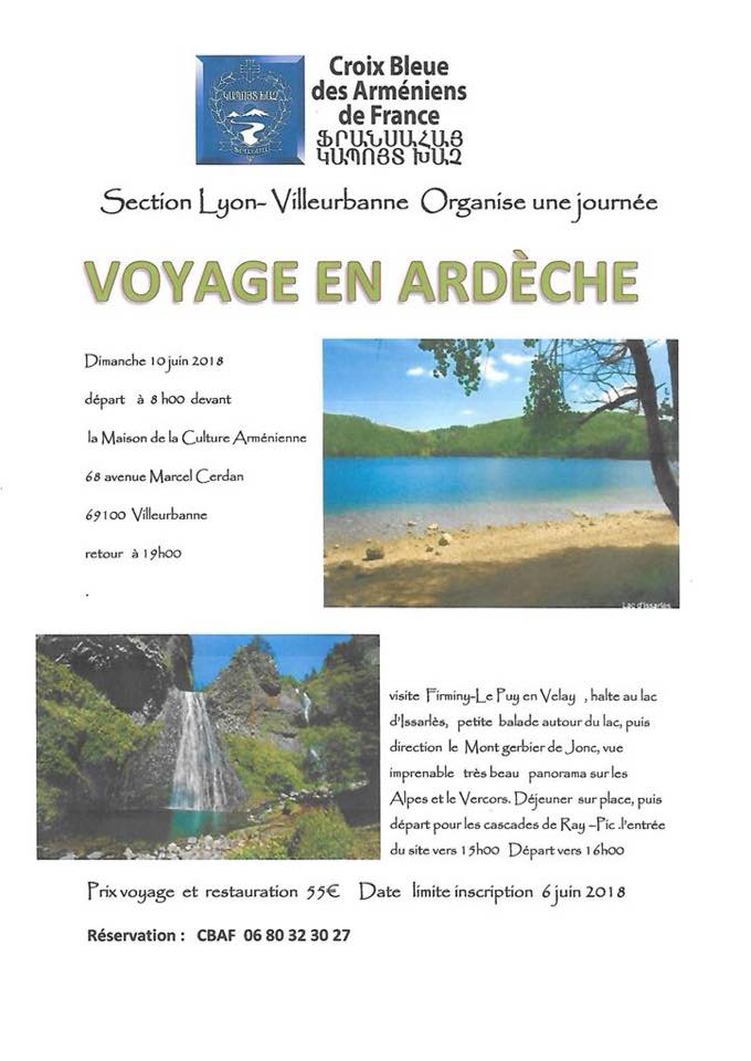 Voyage en Ardèche le Dimanche 10 juin 2018
