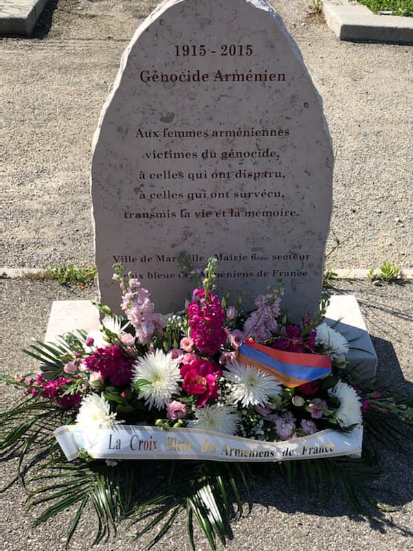 Ce matin, 24 avril 2020, la section « Sossé Mayrig » de Marseille a rendu hommage aux femmes arméniennes disparues pendant le génocide en déposant une gerbe de fleurs sur la stèle qui leur est dédiée, au mémorial du génocide à Beaumont.